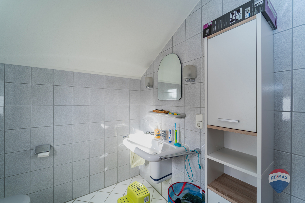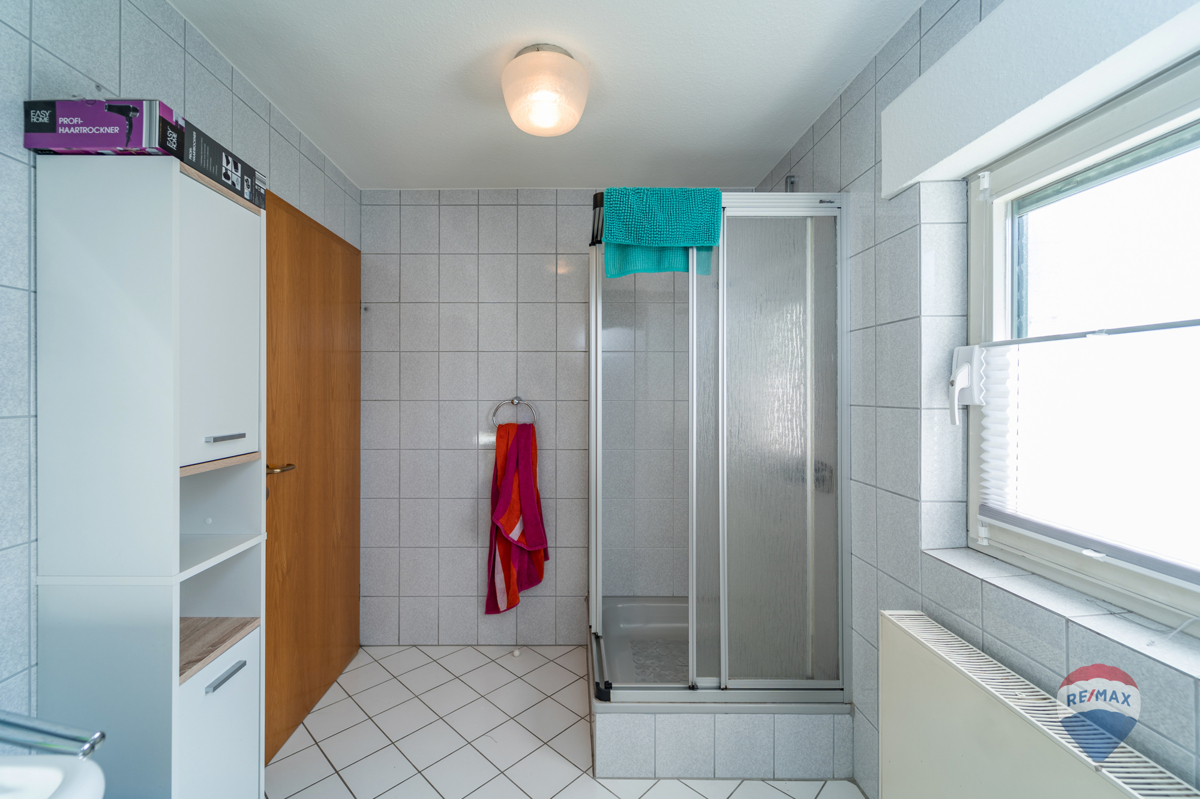 OG: Flur, Badezimmer, Abstellraum, Separates WC mit Dusche, 4 Räume zur individuellen.Nutzung