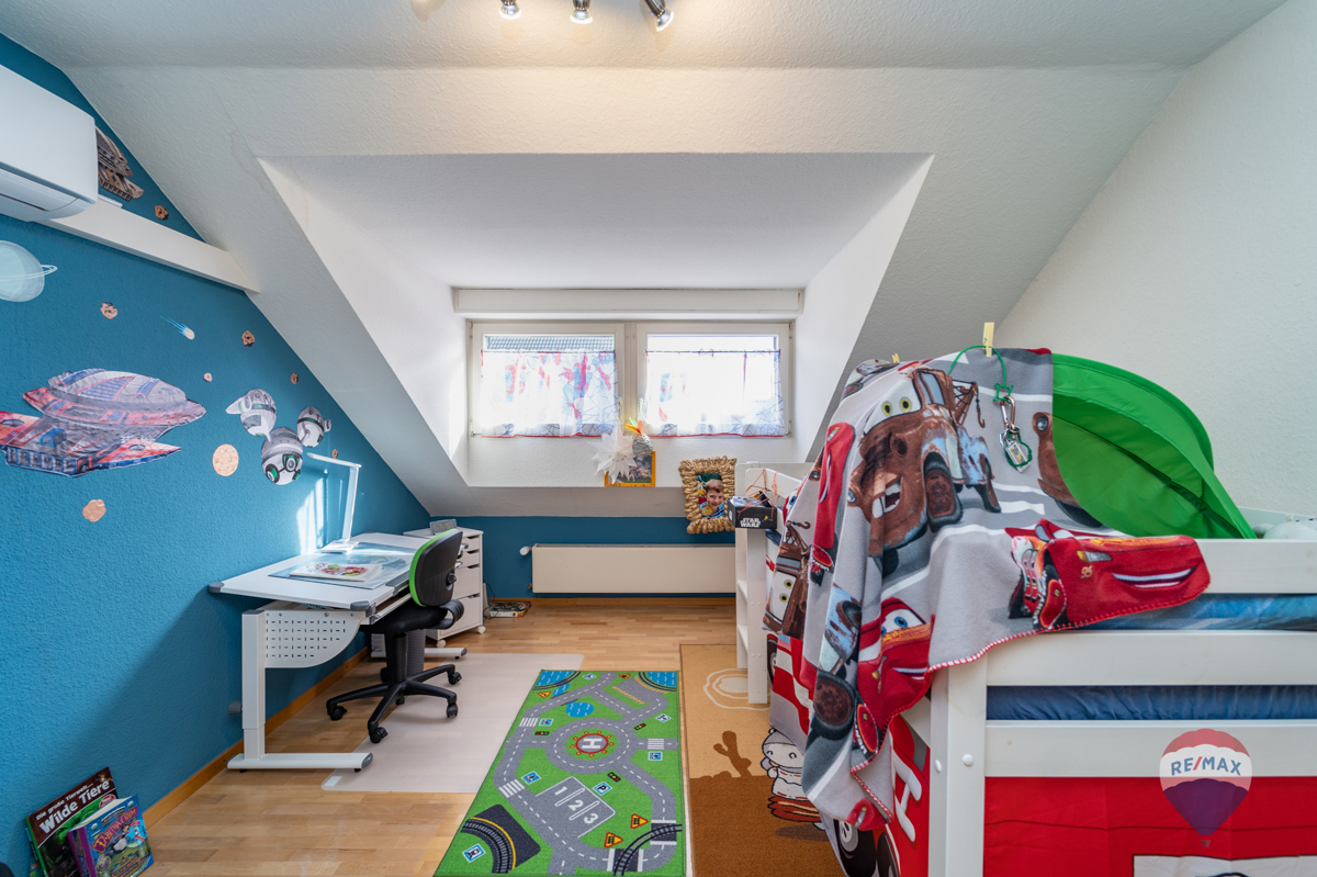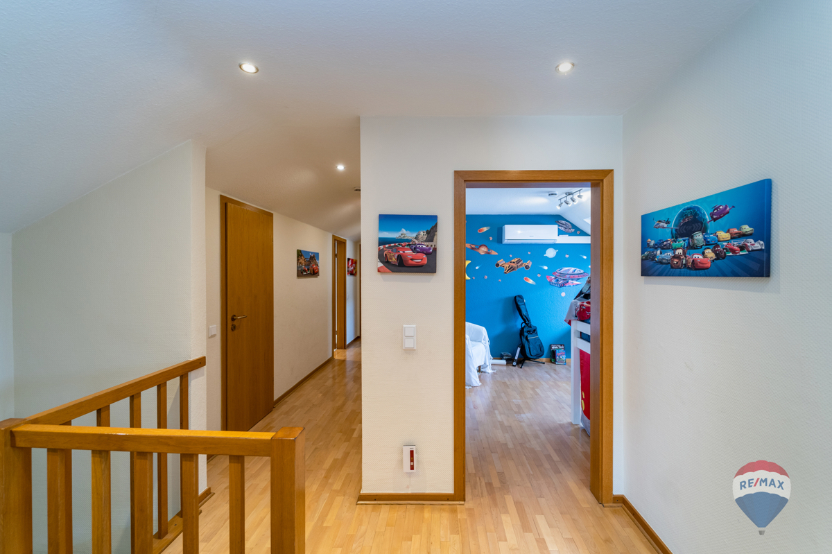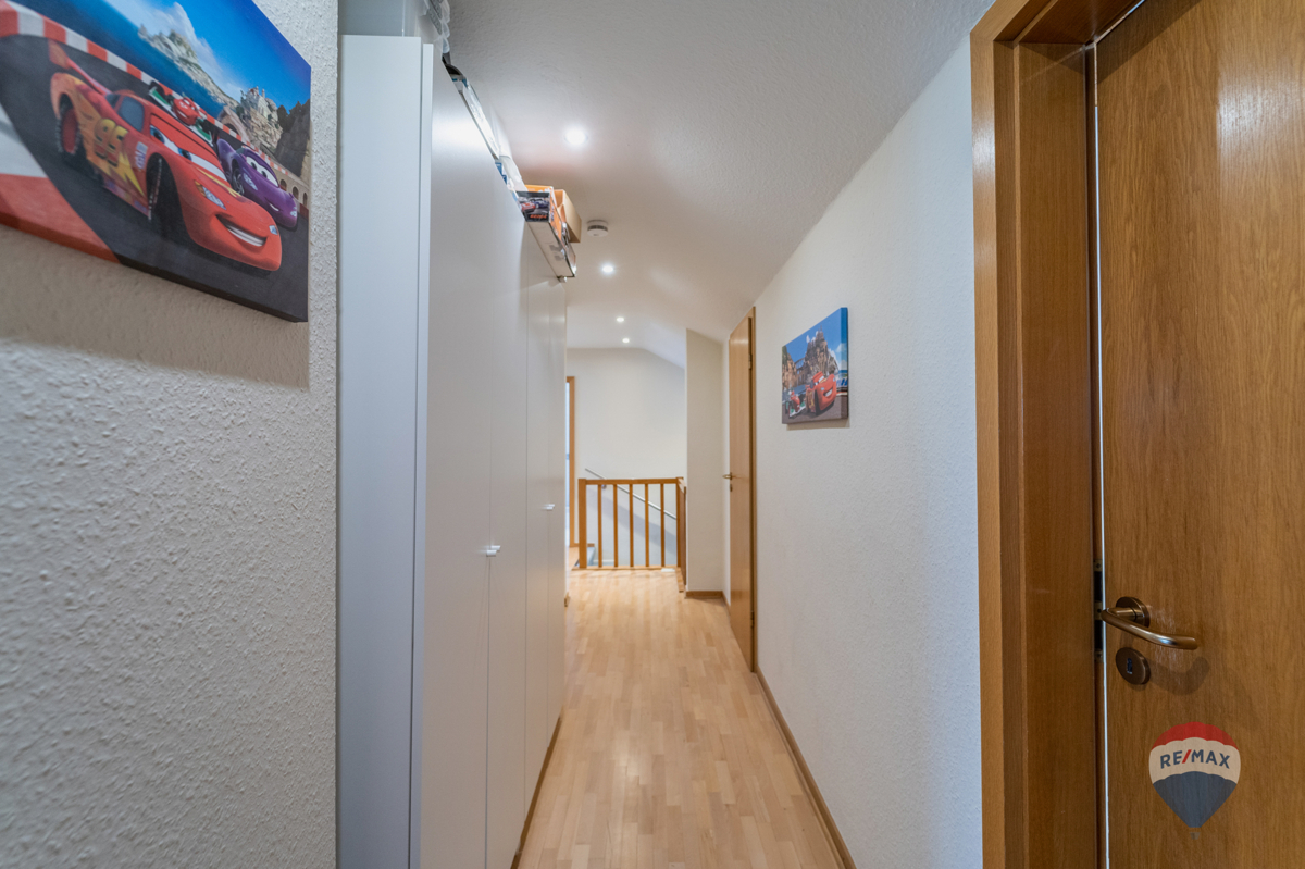 Das Obergeschoss beherbergt einen Flurbereich, ein Badezimmer mit Dusche, einen Abstellraum und vier Räumlichkeiten zur individuellen Nutzung.