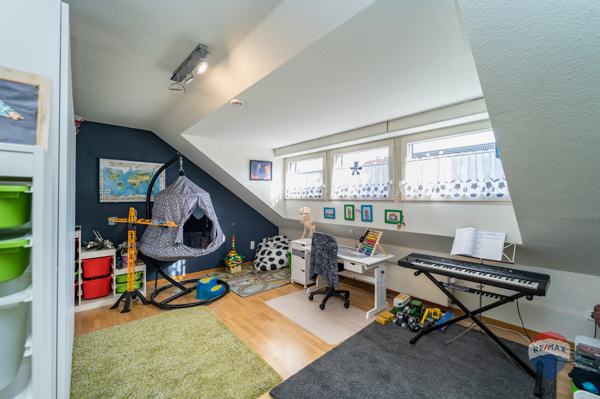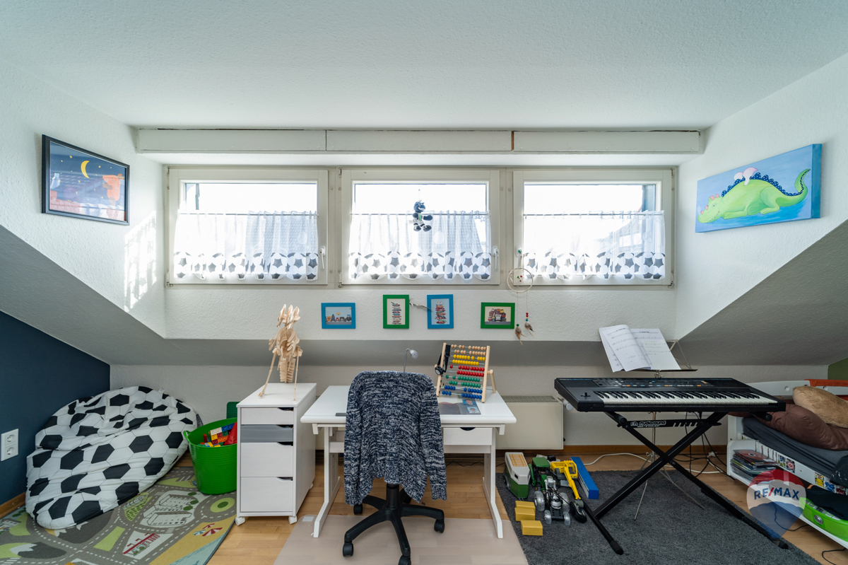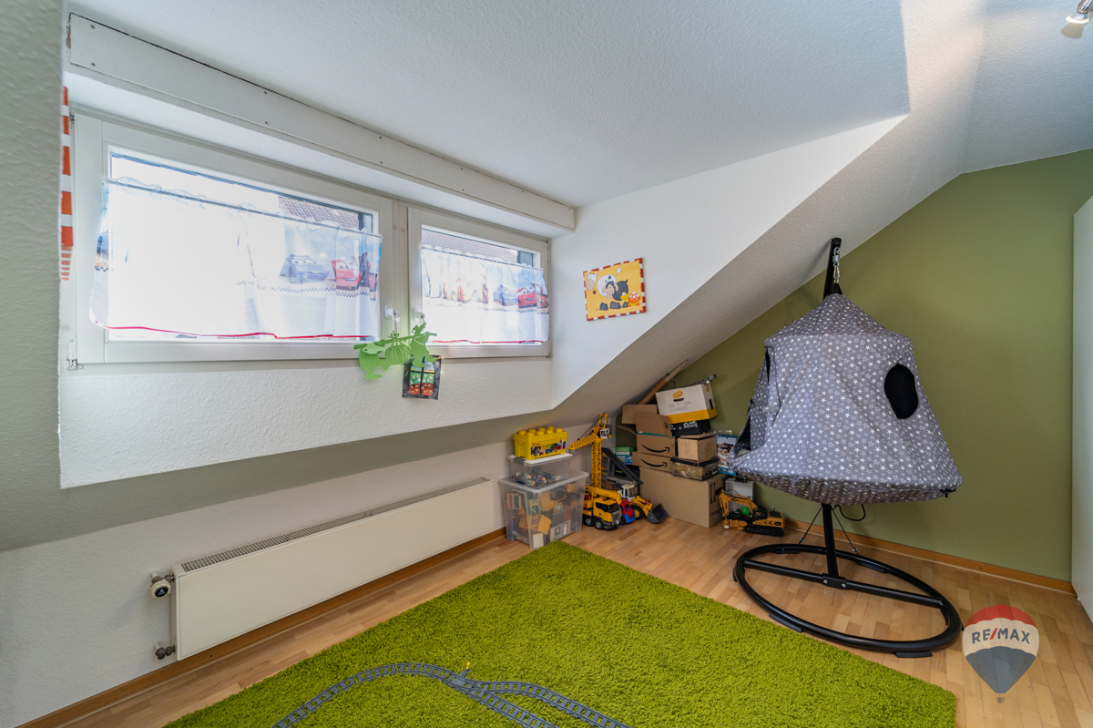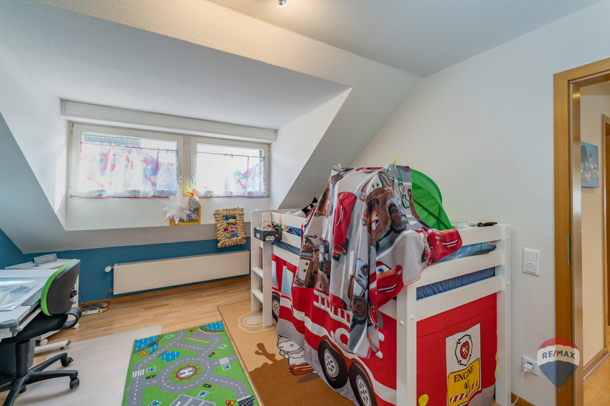 Das Obergeschoss beherbergt einen Flurbereich, ein Badezimmer mit Dusche, einen Abstellraum und vier Räumlichkeiten zur individuellen Nutzung.