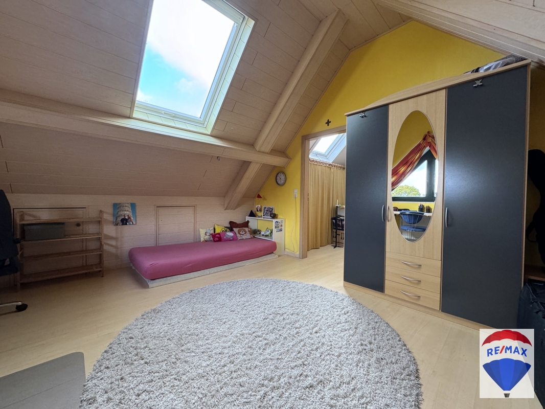 Das ausgebaute Dachgeschoss glänzt mit einem großem Studio mit separatem Stauraum, über das sich so mancher Teenager freuen würde