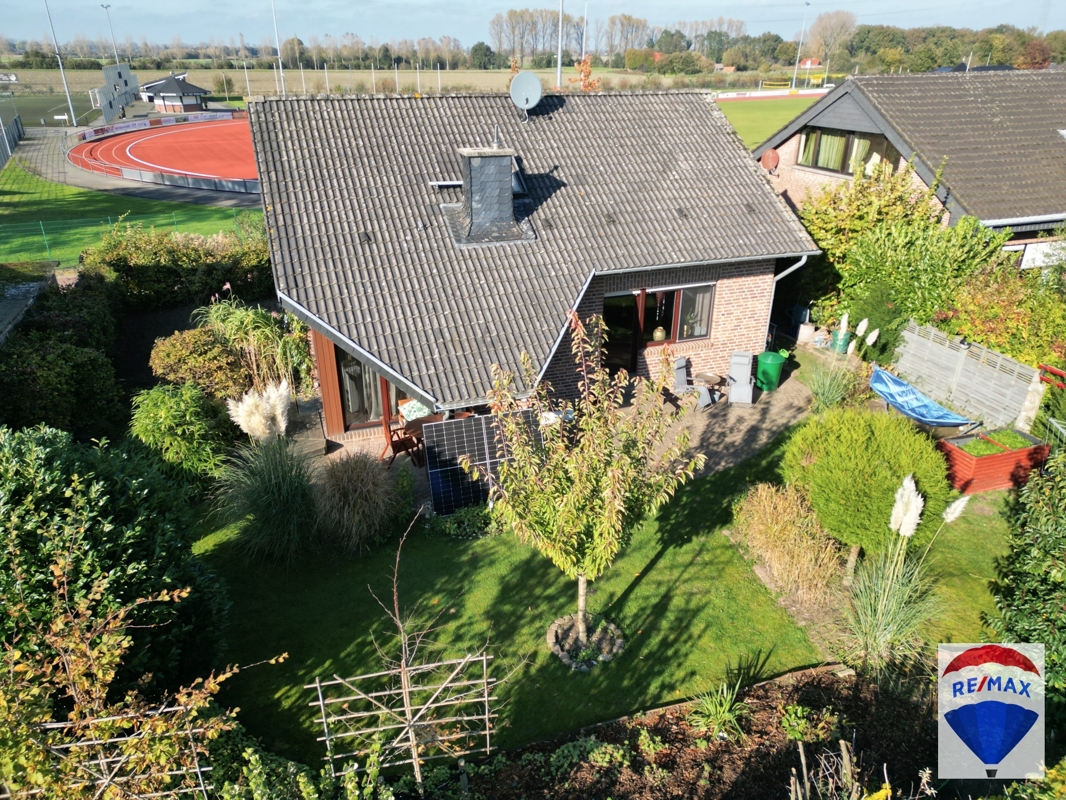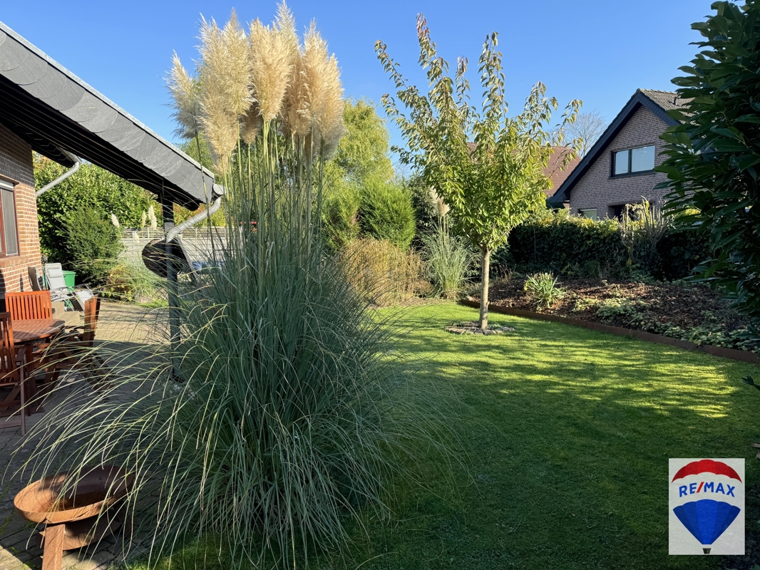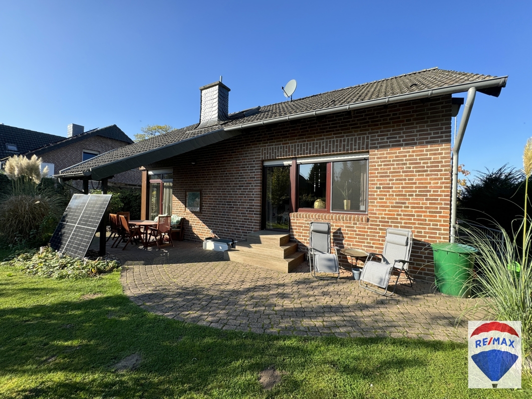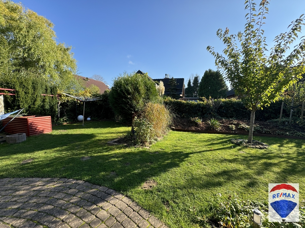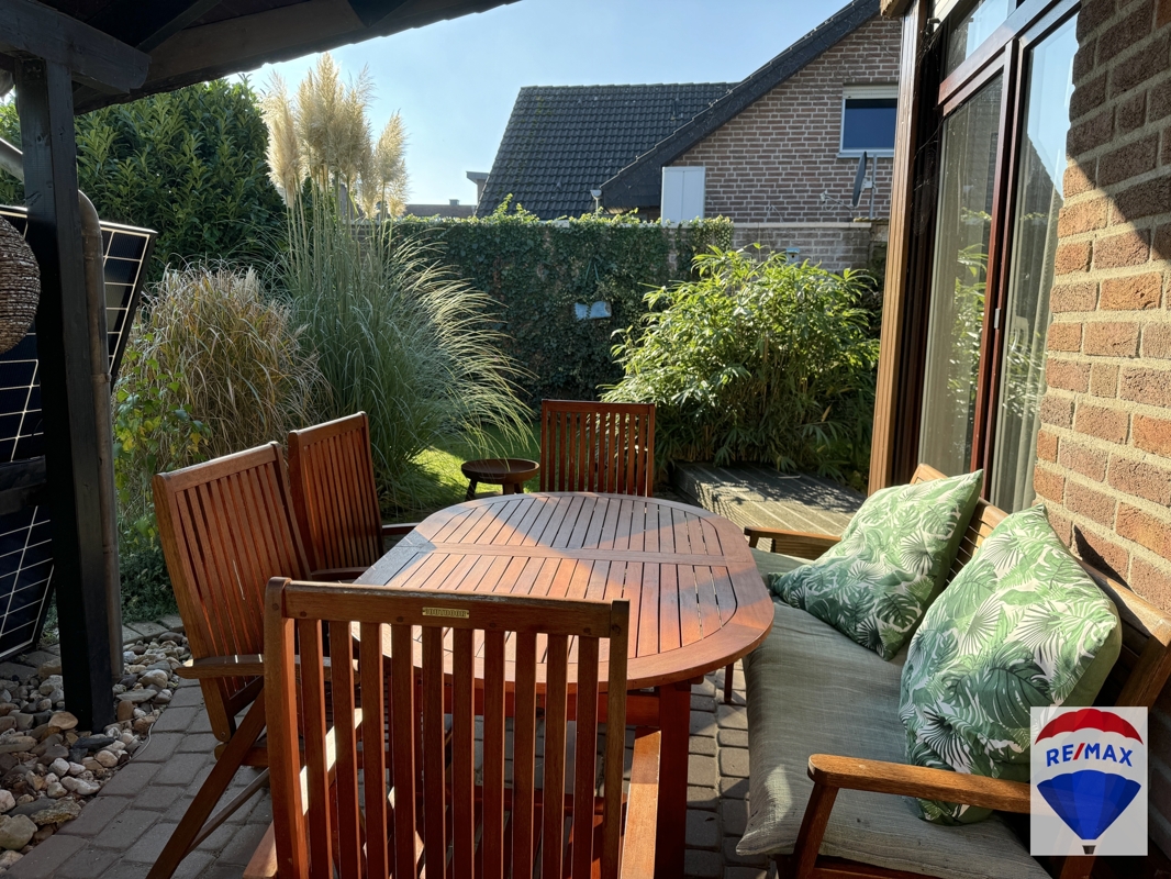 Die großzügig gepflasterte Terrasse verfügt über eine teilweise Überdachung, so dass man hier auch an Regentagen verweilen kann. Der Garten befindet sich in idealer Südausrichtung, ist eingefriedet, teilweise von Hecken umsäumt, umzäunt und wurde abwechslungsreich mit einer Rasenfläche, Sträuchern und Bäumen gestaltet. Ein Solar Balkonkraftwerk schont Ihren Geldbeutel.