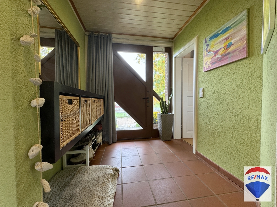 EG: Diele, Küche, großzügiges Wohn-Kaminzimmer, Gäste-WC, Abstellraum