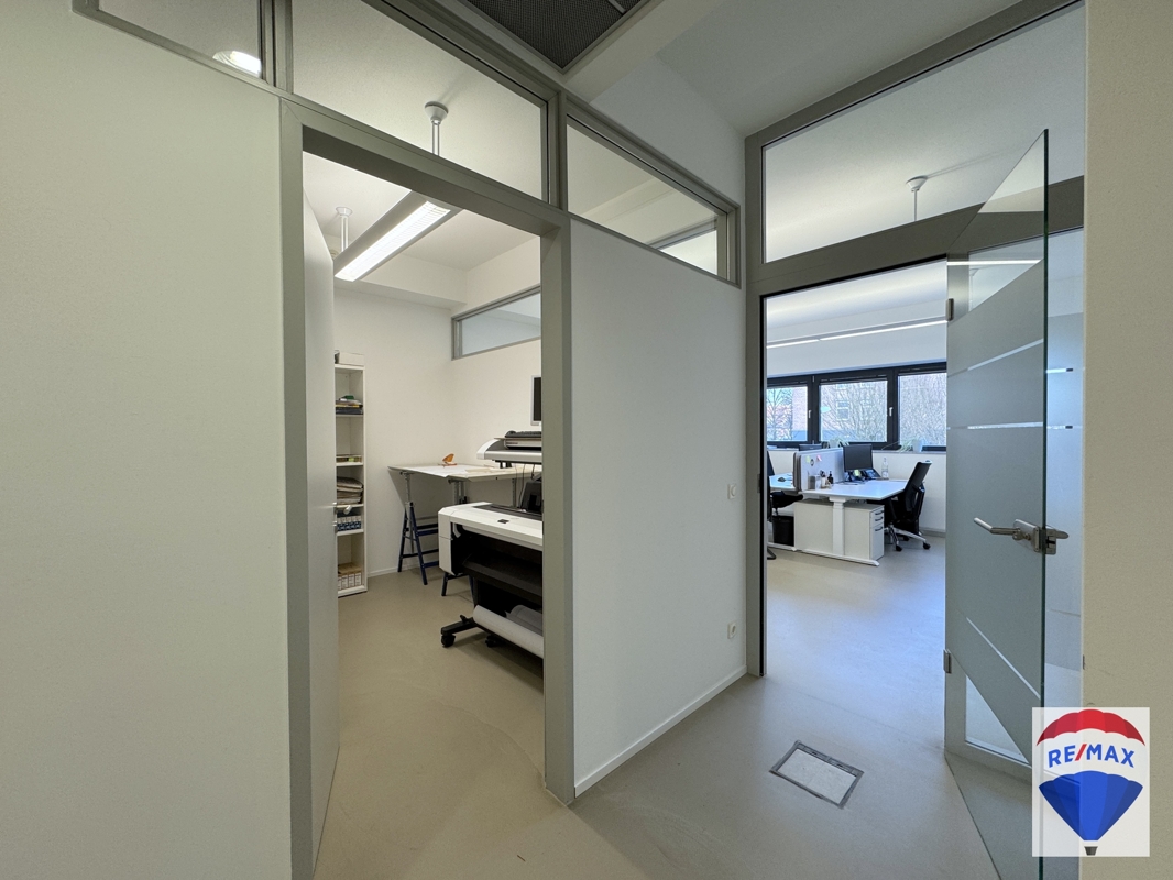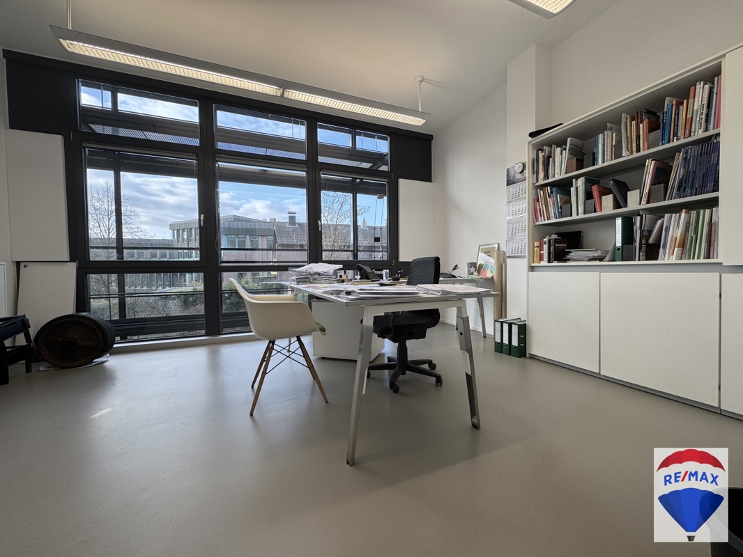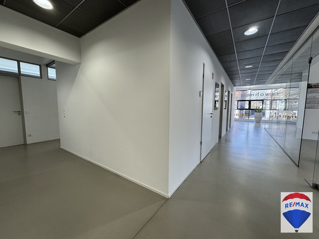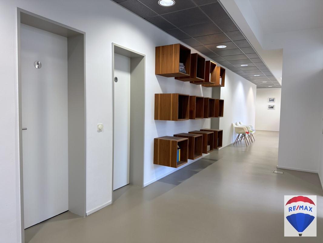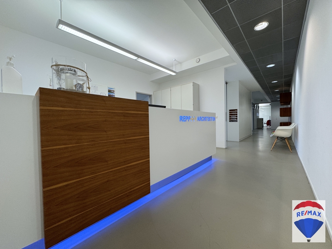 Im 1. Obergeschoss des anspruchsvollen Dienstleistungszentrums, im Turm gelegen, bietet diese Gewerbefläche eine durchdachte Raumaufteilung mit einem Großraumbüro, sechs weitere Räumlichkeiten zur individuellen Nutzung, einem Archiv, einem Technikraum, modernen Sanitäranlagen und einer praktischen Teeküche. Sie werden empfangen von einem repräsentativen Empfangsbereich, der angrenzende Flur sorgt für klare Strukturen und Flexibilität in der Nutzung.
