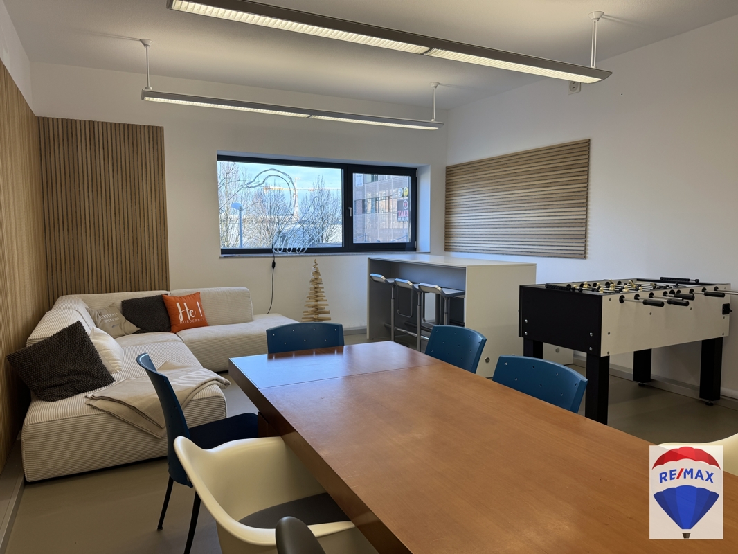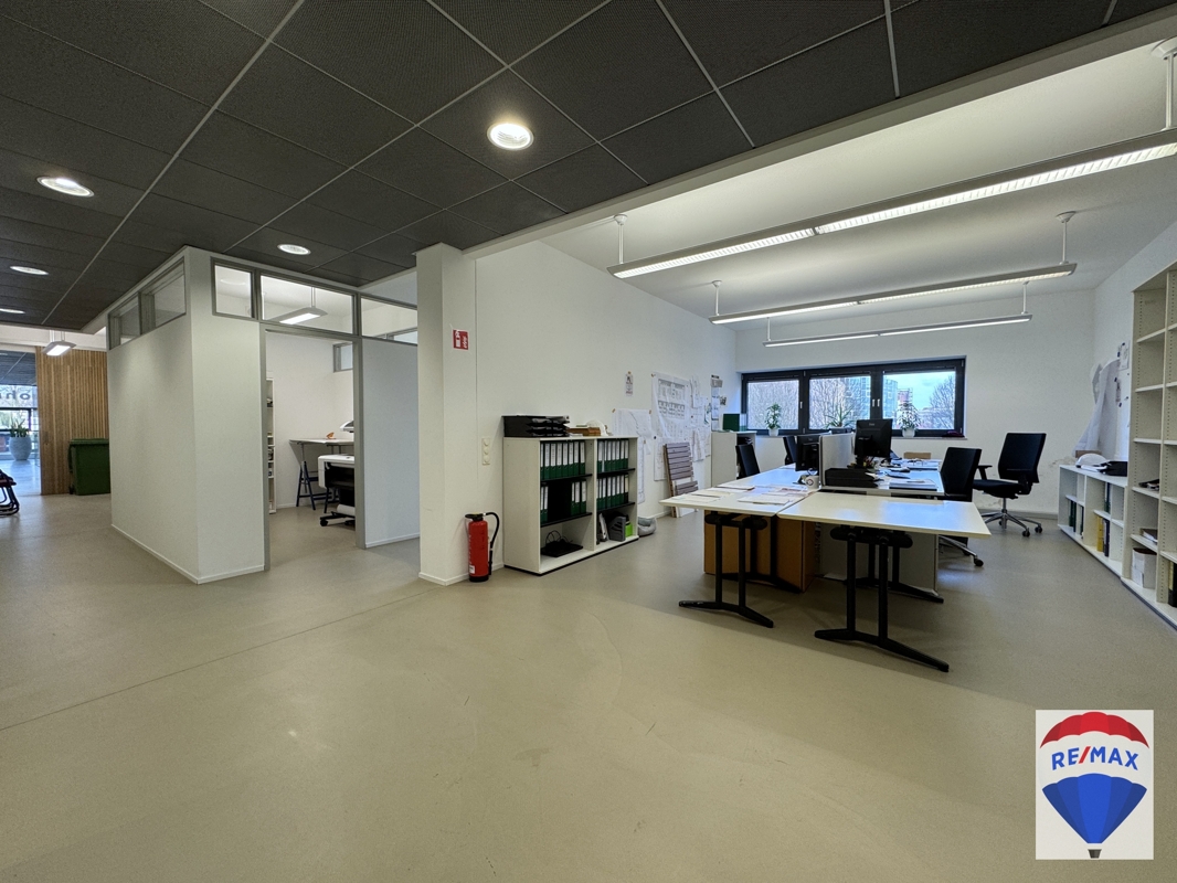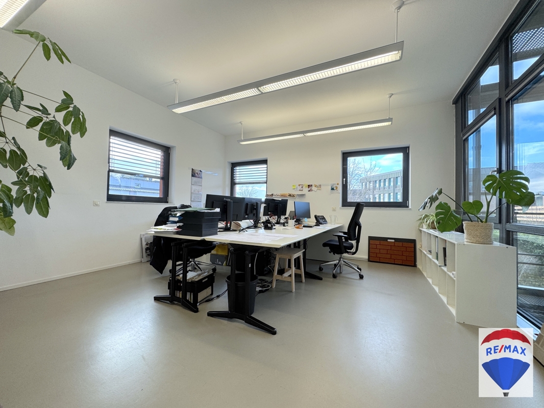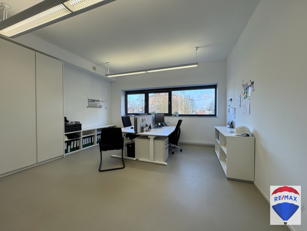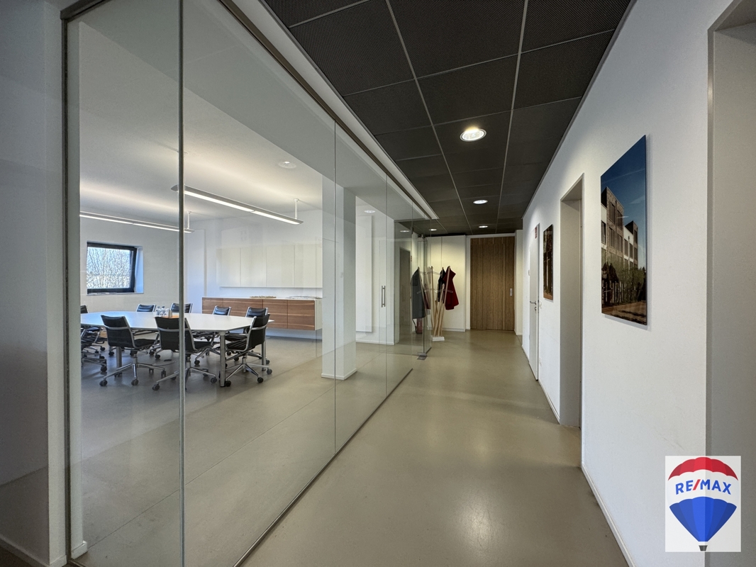Im 1. Obergeschoss des anspruchsvollen Dienstleistungszentrums, im Turm gelegen, bietet diese Gewerbefläche eine durchdachte Raumaufteilung mit einem Großraumbüro, sechs weitere Räumlichkeiten zur individuellen Nutzung, einem Archiv, einem Technikraum, modernen Sanitäranlagen und einer praktischen Teeküche. Sie werden empfangen von einem repräsentativen Empfangsbereich, der angrenzende Flur sorgt für klare Strukturen und Flexibilität in der Nutzung.