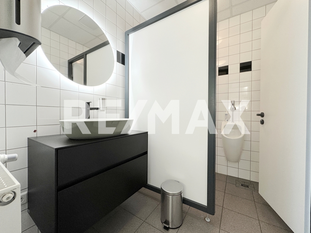 Der kleinere Eingangsbereich dient als zentrale Verbindung zwischen dem Ausstellungsbereich, dem Lager und den Büroflächen. Diese umfassen zwei moderne Büros und einen Besprechungsraum, was eine ideale Arbeitsumgebung bietet. Die gehobene Ausstattung der Immobilie wird durch insgesamt vier moderne WCs unterstrichen und rundet das attraktive Angebot ab. Ergänzt wird das Angebot durch einige verfügbare Stellplätze.