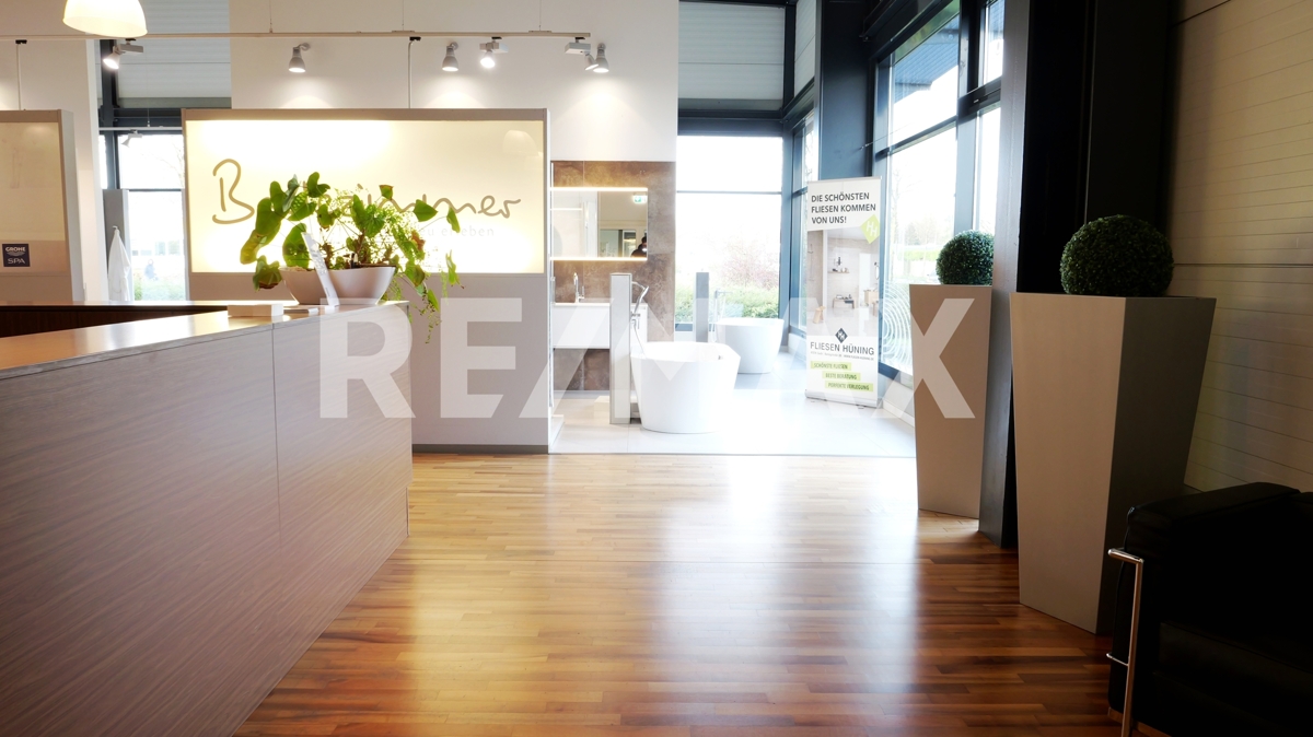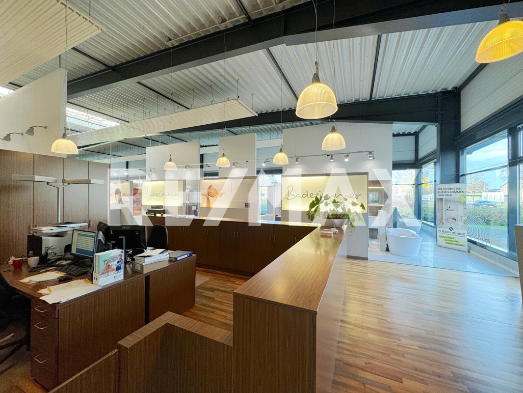 Entdecken Sie eine erstklassige Gewerbefläche zur Miete im attraktiven Gewerbegebiet von Kleve, die sich hervorragend als Ausstellungsfläche eignet. Diese Immobilie bietet eine großzügige Gesamtfläche von 1.417,69 m² auf einem weitläufigen Grundstück von 8.752 m².Das Herzstück der Immobilie ist ein großzügiger Ausstellungsbereich von ca. 501 m², ausgestattet mit großen Fenstern, die für eine exzellente Sichtbarkeit zur Straße hin sorgen. Ein angrenzender Lagerbereich von ca. 787 m² bietet Ihnen reichlich Platz für Waren und Equipment, komplettiert durch Deckenhöhen von 4 bis 5 m und ein großes Rolltor von 4 m Höhe, ideal für bequeme Warenanlieferungen.