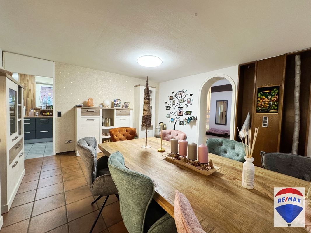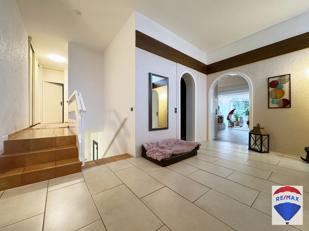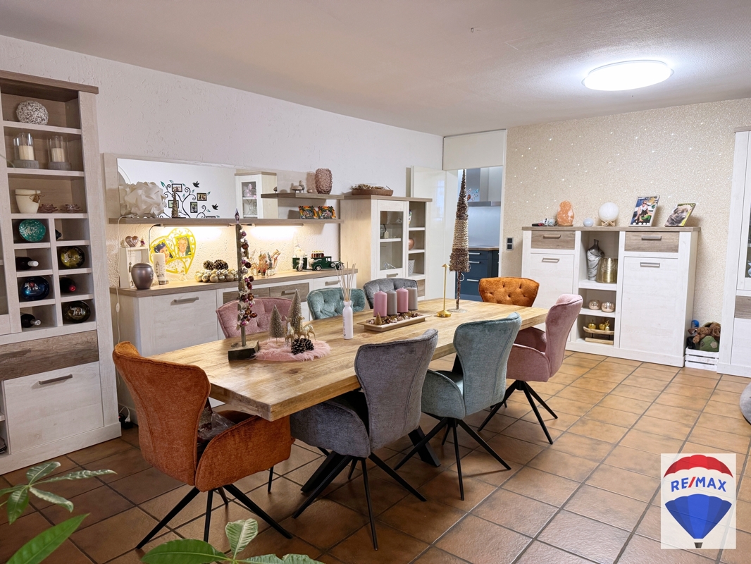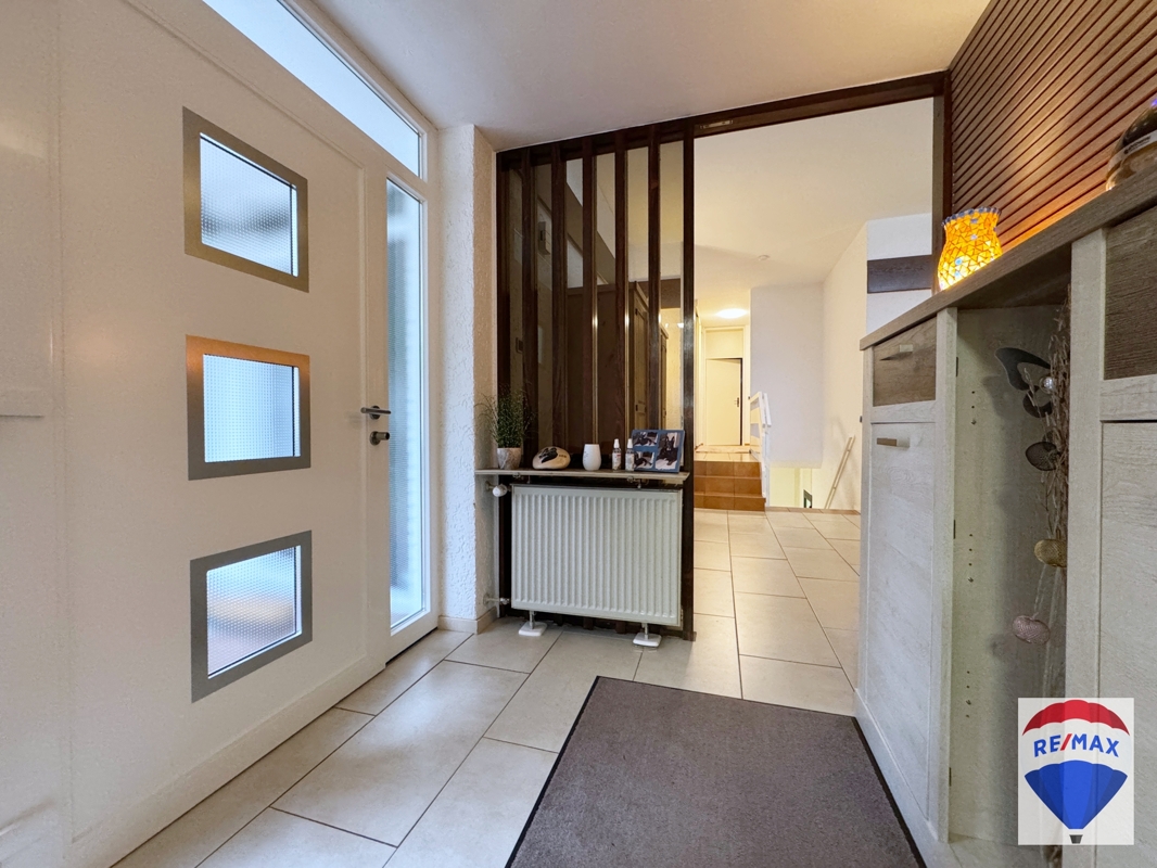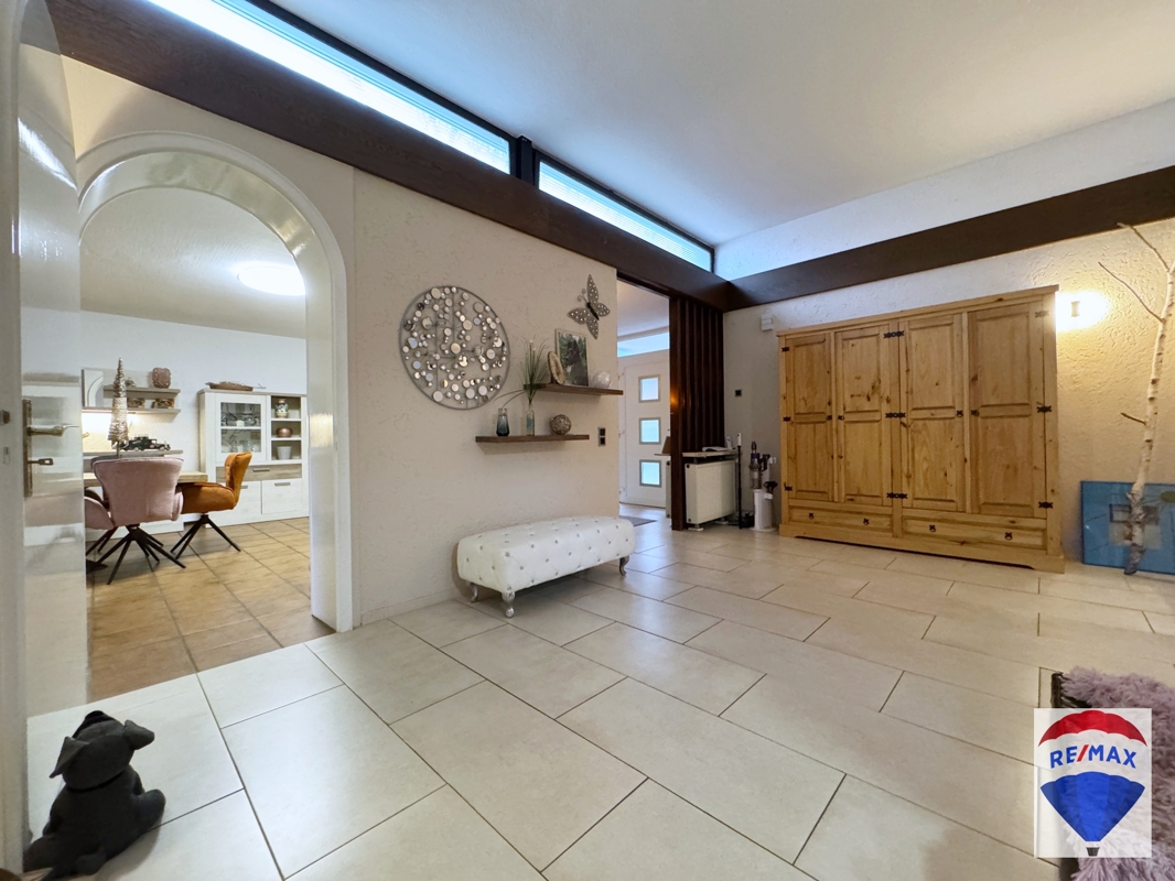 Das Wohnhaus zeichnet sich durch eine großzügige Raumaufteilung und lichtdurchflutete Räume aus. Besonders hervorzuheben ist das helle Wohnzimmer mit einer großen, bodentiefen Fensterfront, die viel Tageslicht hereinlässt und für ein angenehmes Raumklima sorgt.
