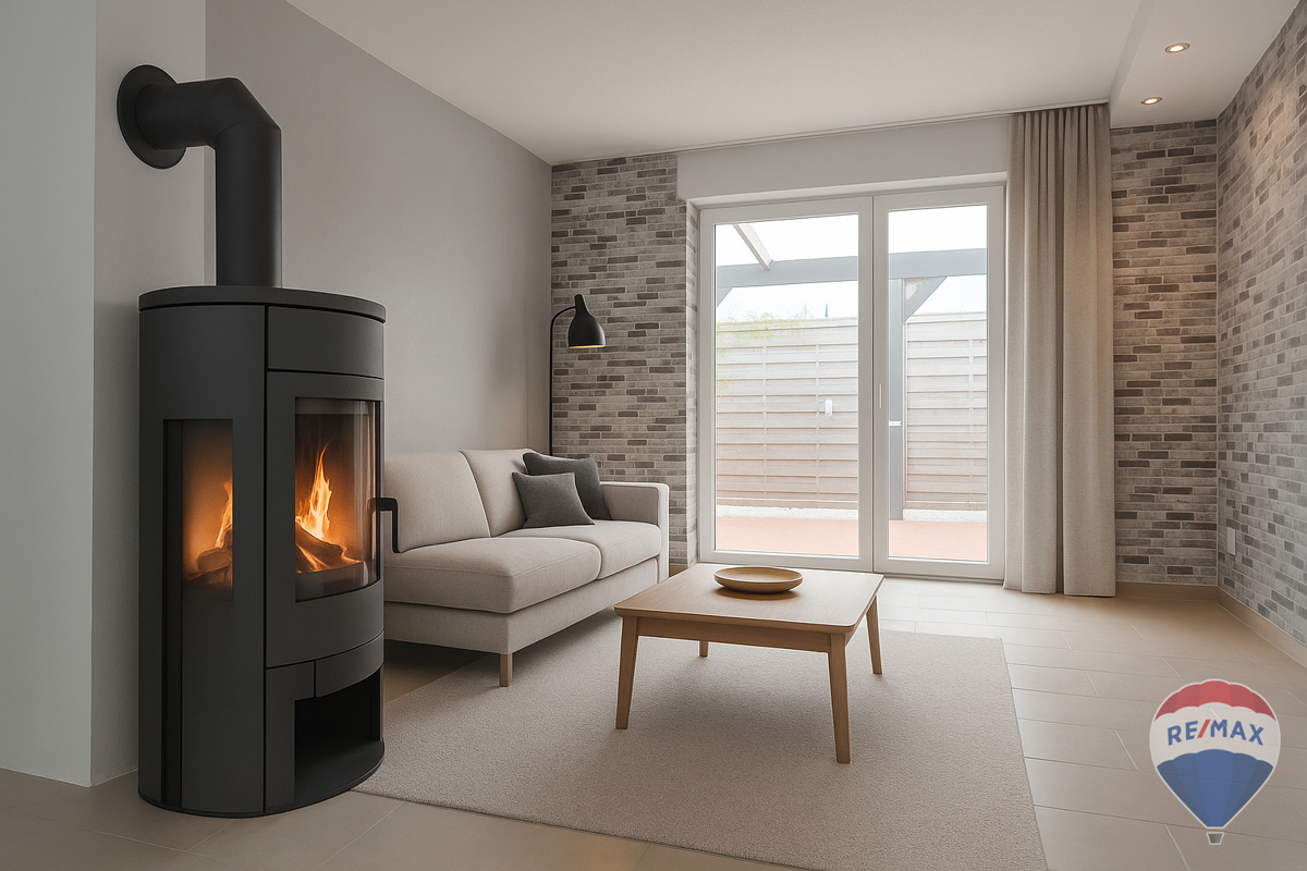 Im Erdgeschoss finden Sie ein geräumiges Wohnzimmer / Esszimmer mit einem gemütlichen Kamin, der in der kalten Jahreszeit für wohltuende Wärme sorgt. Die offene Küche lädt dazu ein, kulinarische Abenteuer zu starten und mit Freunden und Familie herrliche Stunden zu verbringen. Ein praktisches Gäste-WC ist ebenfalls vorhanden.