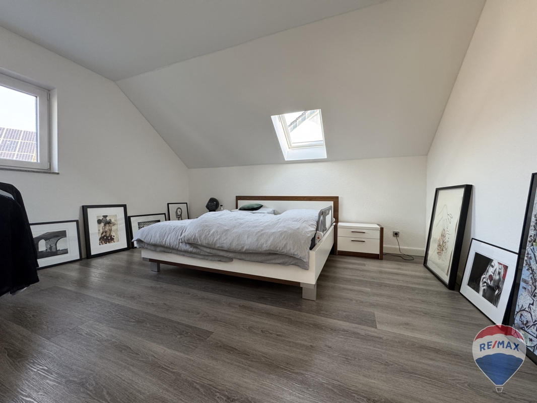 Speicherraum: 44,7 m², dieser wurde bereits zum Ausbau vorbereitet. Strom-, Abwasser- u. Wasserleitungen wurden bereits installiert.
