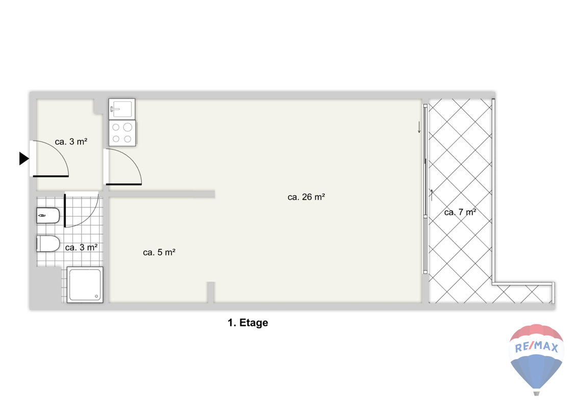 - Wohnfläche gesamt ca. 41m²- 1x Wohnzimmer 26,63 m²