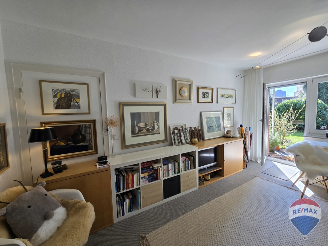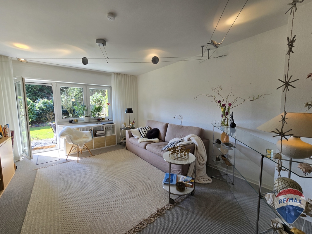- Wohnzimmer mit Zugang zur Terrasse und zum lauschigen Garten