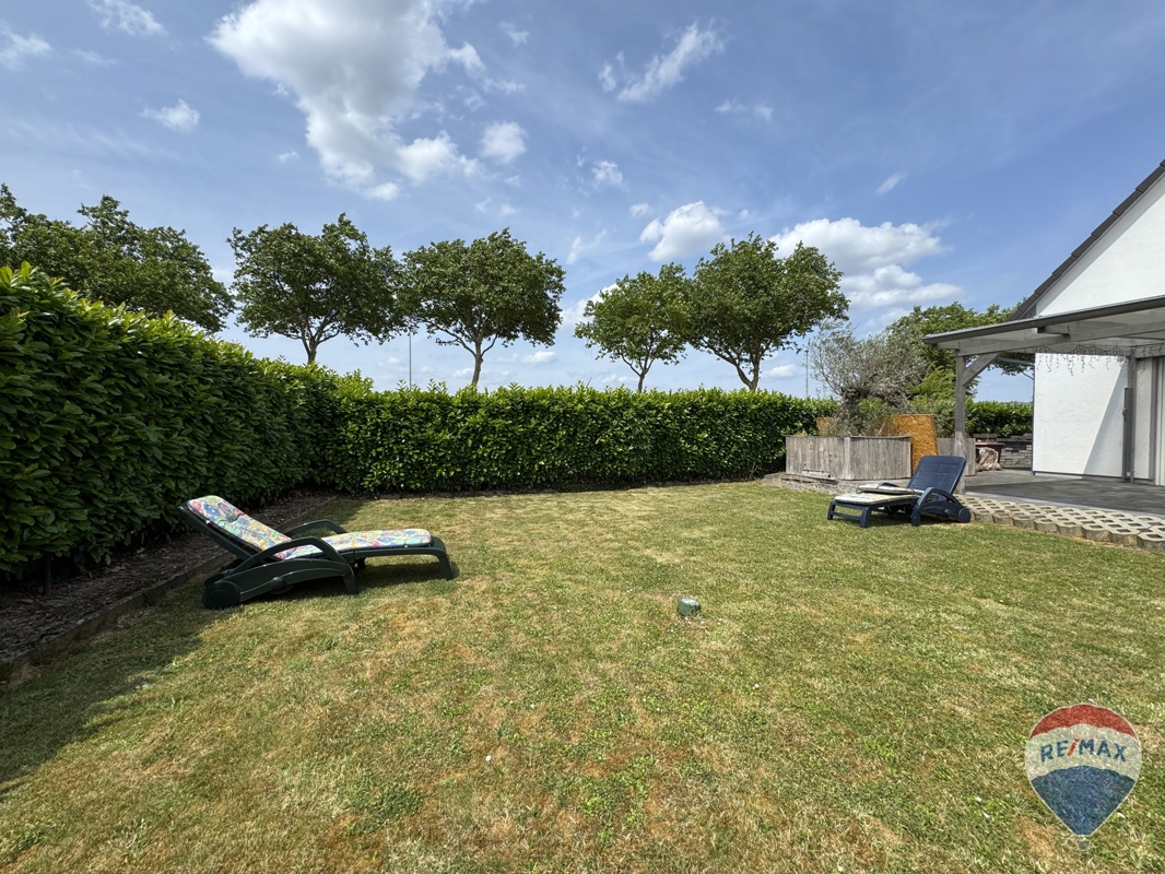 Das Grundstück in einer Größe von 433 m² wurde eingefriedet und von Hecken umsäumt. Die Terrasse und Garten befinden sich in bevorzugter Südwestlage.