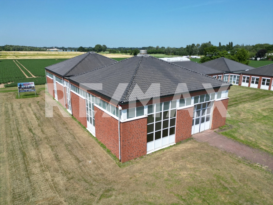 Die Industriehalle befindet sich in einer strategisch günstigen Lage in Kevelaer, einer charmanten Stadt am Niederrhein, die bekannt für ihre reiche Geschichte und ihren bedeutenden Wallfahrtsort ist. Die Region bietet eine hervorragende Anbindung an das überregionale Verkehrsnetz, was sie zu einem idealen Standort für logistische und industrielle Unternehmen macht. In unmittelbarer Nähe befinden sich die Bundesstraßen B9 und B58, die eine schnelle Verbindung zu den Autobahnen A57 und A40 gewährleisten. Diese Verkehrsadern ermöglichen eine zügige Erreichbarkeit der Ballungszentren Ruhrgebiet und Niederlande, was die Attraktivität des Standorts weiter steigert.Kevelaer selbst bietet eine ausgezeichnete Infrastruktur mit zahlreichen Einkaufs-, Gastronomie- und Dienstleistungsangeboten. In der Umgebung der Immobilie finden sich zudem eine Vielzahl von mittelständischen Unternehmen und Handwerksbetrieben, die das dynamische Wirtschaftsgefüge der Region prägen. Dank der Nähe zum Flughafen Düsseldorf-Weeze ist auch der internationale Waren- und Personenverkehr unkompliziert zu gewährleisten.
