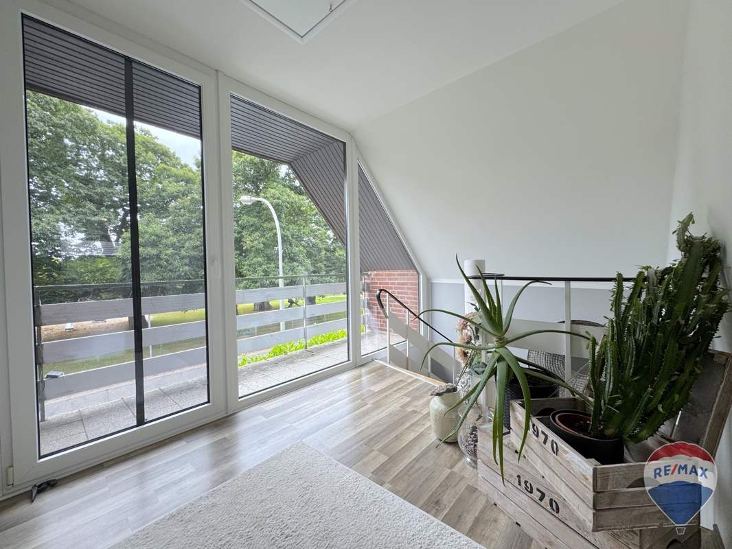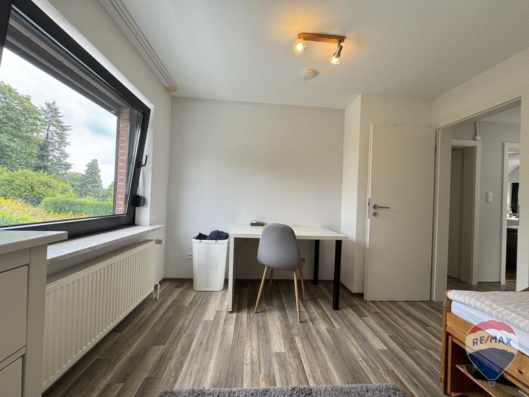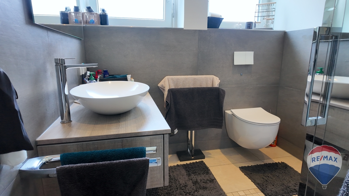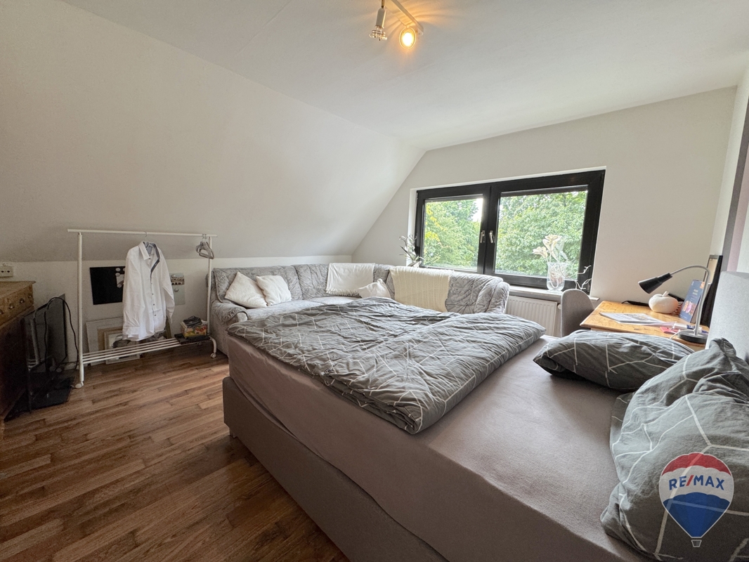 Das Badezimmer im Obergeschoss verfügt u.a. über eine Badewanne. Die lichtdurchfluteten Schlafräume wurden mit Laminatboden bestückt und ein Schlafraum hat den direkten Zugang zum Sonnenbalkon.