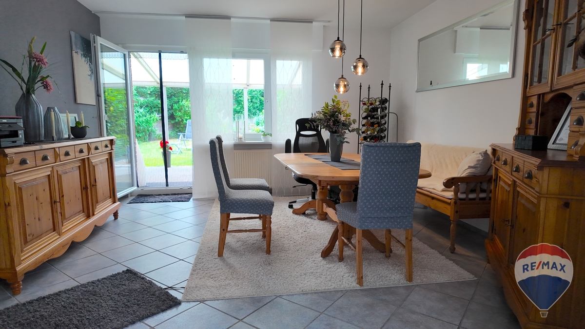 Mit einer Wohnfläche von ca. 135 m² , inklusive anteiliger Terrassenfläche, erstreckt sich das Haus über 1,5 Etagen und steht auf einem großzügigen Grundstück von 451 m².