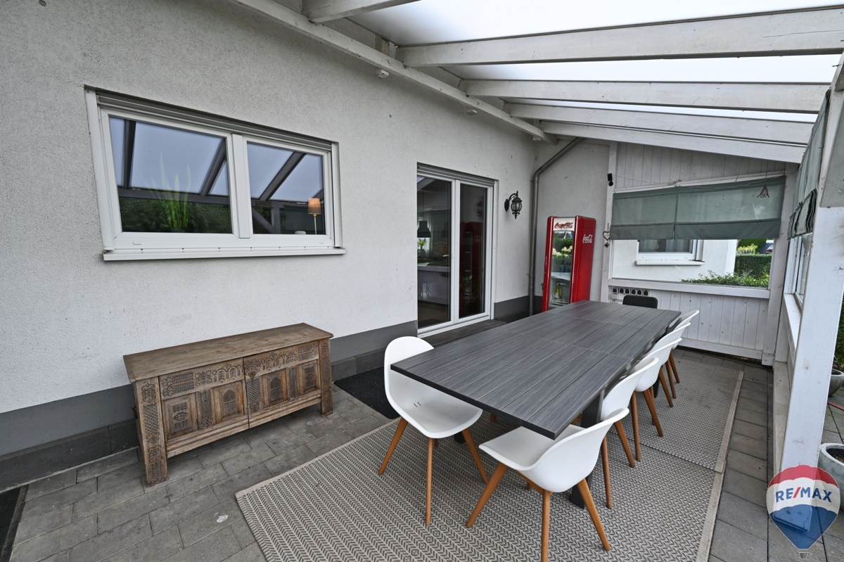 Zugang zur überdachten Terrasse und dem gepflegten Garten