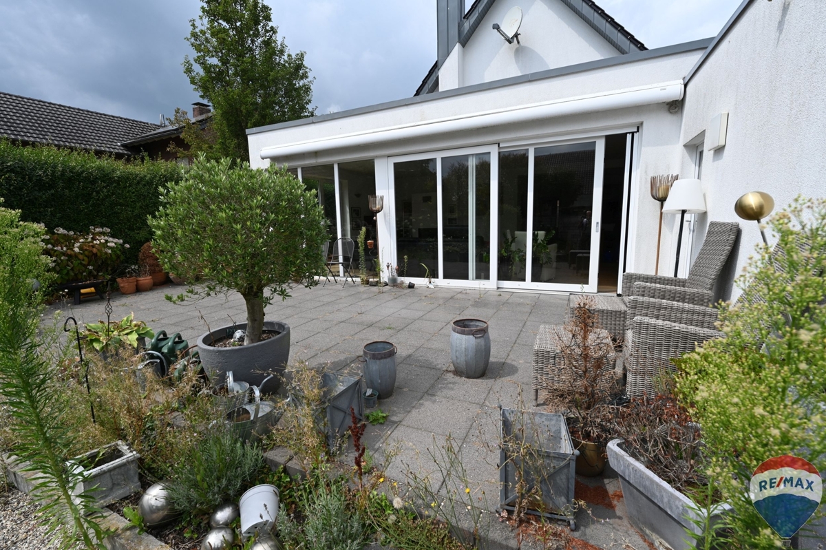 - Die großzügige Terrasse im Erdgeschoss ist mit einer praktischen Markise ausgestattet, die an sonnigen Tagen für angenehmen Schatten sorgt.