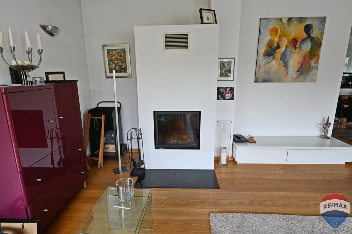 - Der gemütliche Kamin im Wohnzimmer im Erdgeschoss lädt zu entspannten Abenden am Feuer ein.