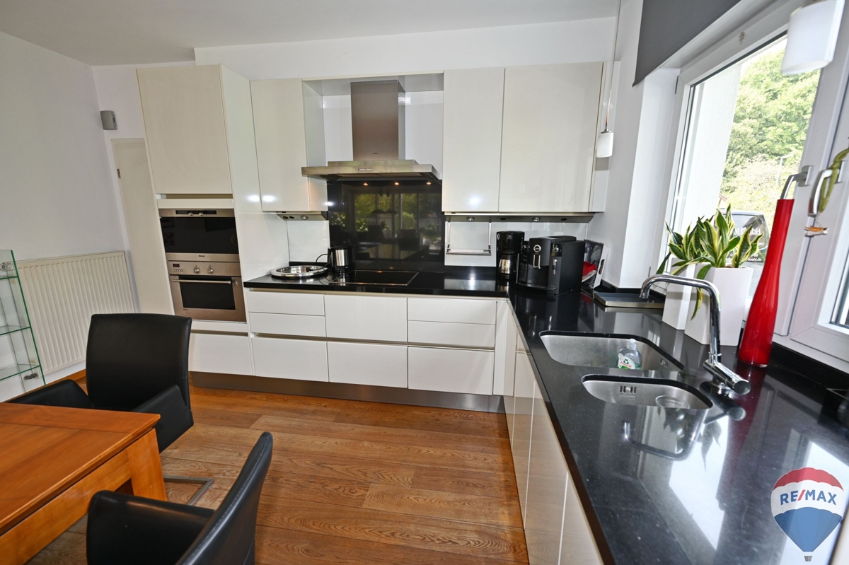 Mit einer Wohnfläche von insgesamt ca. 189,15m² verteilt auf 1,5 Etagen und zwei Wohneinheiten erwarten Sie insgesamt 5 Zimmer, darunter 3 gemütliche Schlafzimmer und 2 moderne Badezimmer, die mit eleganten schwarzen Bodenfliesen und weißen Wandfliesen gestaltet sind. Ein zusätzliches Gäste-WC im Erdgeschoss sorgt für Komfort und Flexibilität im täglichen Leben.