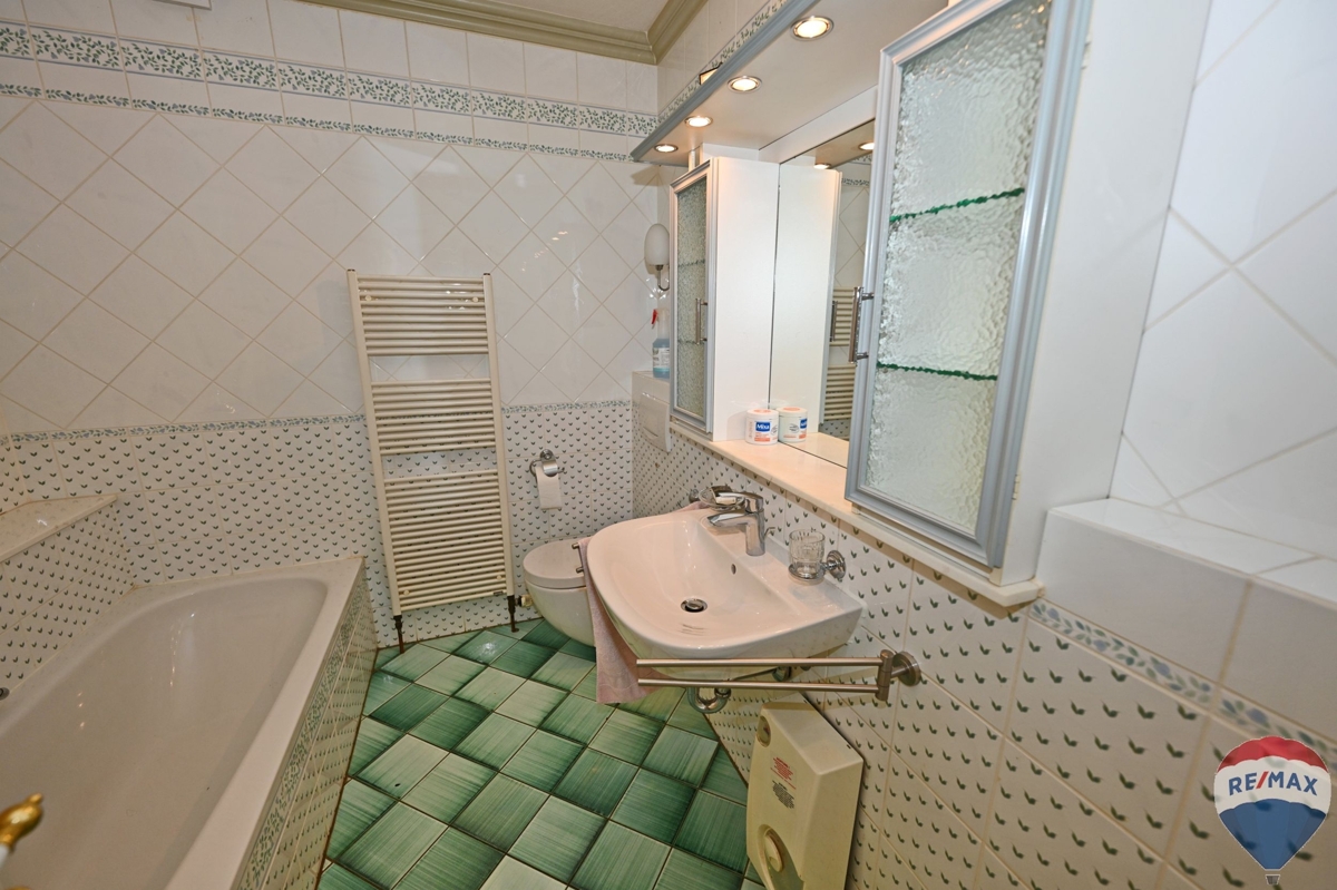 Links befindet sich das Badezimmer, ausgestattet mit einer Badewanne, die Ihnen einen komfortablen Ort der Entspannung bietet.