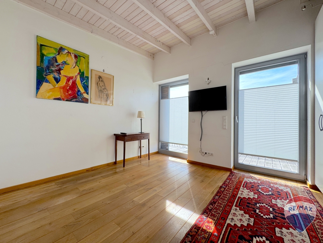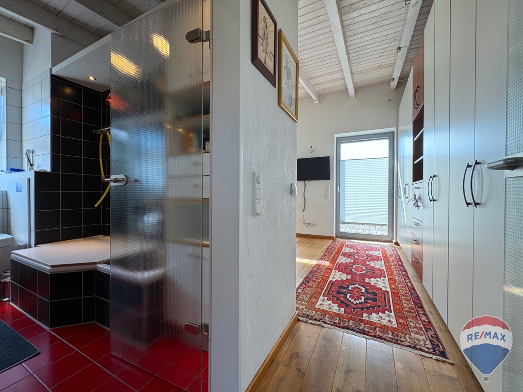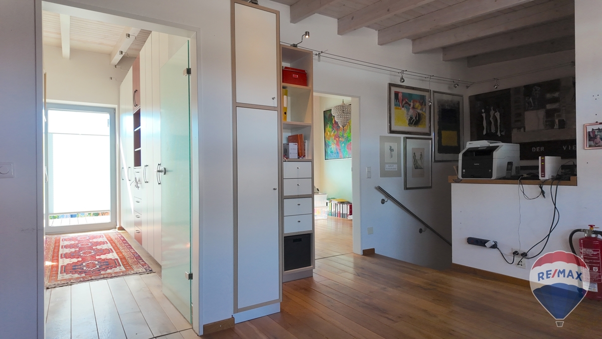 Galerie, 2 Räumlichkeiten zur individuellen Nutzung, Bad mit Dusche und Badewanne sowie Sauna, geräumiger Balkon über die gesamte Länge des Hauses