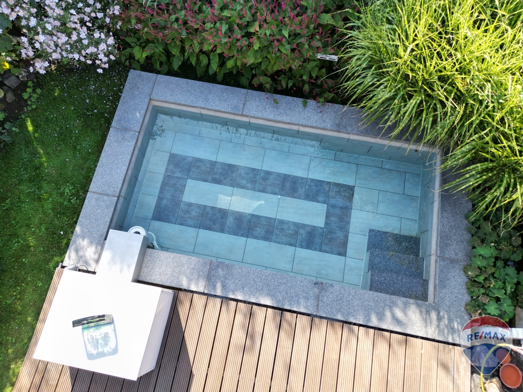 Das Grundstück ist eingefriedet und der Garten wurde abwechslungs- u. ideenreich mit viel Liebe zum Detail durch Blumenrabatte, Sträucher, Gartenhaus und eine Rasenfläche angelegt. Ein Kneipbecken mit Pooltechnik (Schwimmbadpumpe) wird Sie überzeugen. Der Garten präsentiert sich in einem äußerst gepflegtem Zustand und ein separater überdachter Unterstand für Fahrräder, Mülltonnen etc. befindet sich seitlich der Immobilie. Dieser kann ebenfalls als Werkraum mit Stromanschluss genutzt werden.