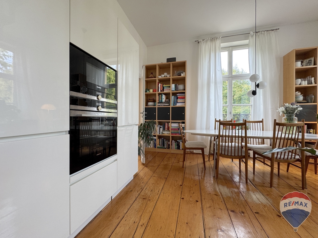 Nach Betreten der Immobilie erkennen Sie auf Anhieb den gehobenen Standard der gesamten Wohnung. Hier erwartet Sie im 1. Obergeschoss eine raffinierte Grundrissplanung mit einem großzügigen Flurbereich, ein edles Badezimmer, eine moderne Küche mit offenem Essbereich und ein geräumiges Wohnzimmer. Der Wohnbereich ist 46,23 m² groß und bietet somit verschiedene Möglichkeiten die Möbel zu platzieren. Der Küchen- und Essbereich ist offen gehalten und bietet somit kommunikatives Miteinander. Die moderne und wertige Einbauküche wurde dreiseitig bestückt und ist optional von den Eigentümern zu übernehmen. Hier wurde ein Thekenbereich sinnvoll integriert. Das Badezimmer wurde im Jahre 2016-2017 erneuert und verfügt über ein WC, Handwaschbecken mit integrierten Badmöbeln und einer freistehenden Badewanne. Der Boden wurde im Originalzustand restauriert. Der uneinsehbare Balkon wurde im Jahre 2016-2019 erneuert und bietet Ihnen einen traumhaften Blick in den Garten und in den Tiergartenwald. Dieser befindet sich in idealer Süd-Westausrichtung, Ruhe und Erholung sind hier garantiert!