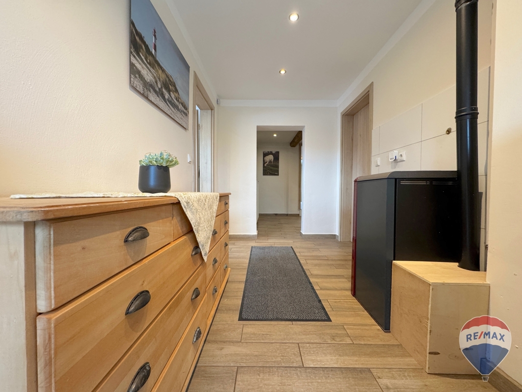 Das Haus verfügt über insgesamt drei Zimmer, darunter zwei Schlafzimmer. Die Beheizung erfolgt über eine Viessmann-Ölheizung (Baujahr 2005) mit einem Öltankvolumen von ca. 5.000 Litern. Zusätzlich sorgen eine Solarthermieanlage aus dem Jahr 2020 mit ca. 7 kWh Leistung, eine Photovoltaikanlage von 2021 mit rund 7 kWp sowie ein leistungsstarker Pelletofen (ca. 9 kWh) für eine nachhaltige und effiziente Energieversorgung.